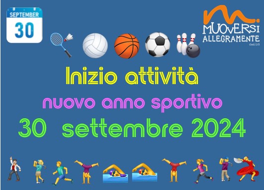 Vi informiamo che tutte le attività di Muoversi Allegramente inizieranno a partire da Lunedì 30 settembre 2024