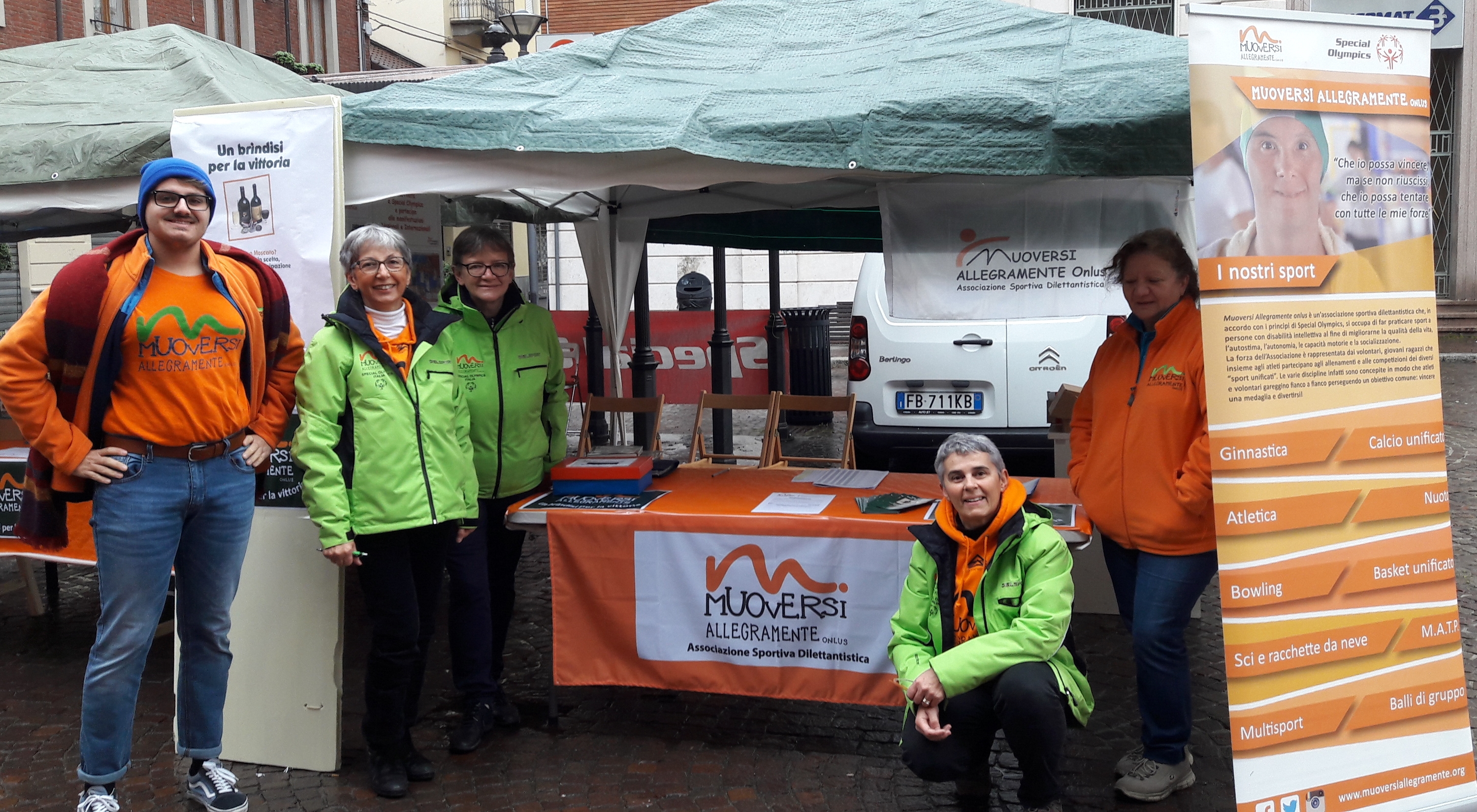 A nome degli Atleti, dei Volontari, dei Tecnici, del Direttivo e di tutti i Soci dell’ASD Muoversi Allegramente Onlus grazie a tutti coloro che domenica 11 novembre sono venuti a trovarci in Piazza San Giovanni a Ciriè per partecipare all’evento “Un brindisi per la vittoria”.