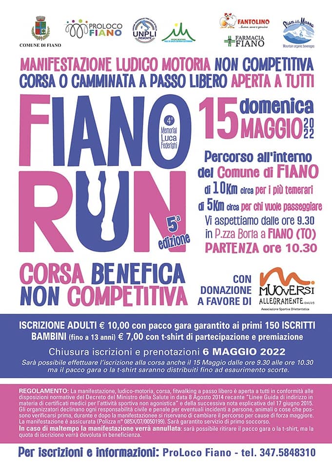 Un percorso di 5km o di 10km all’interno del comune di Fiano in memoria di Luca Federighi